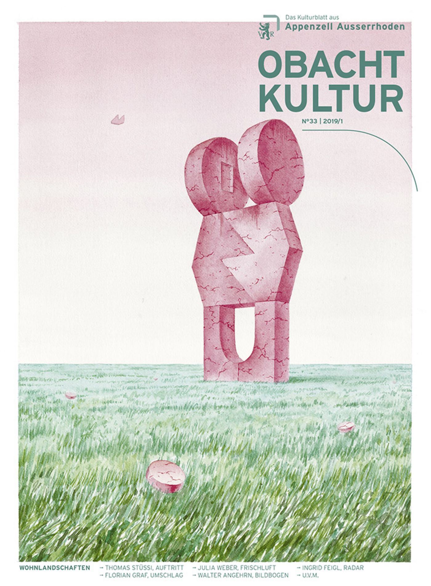 «Obacht Kultur» N° 33, 2019/1 widmet sich dem Wohnen. Unterscheidet sich das Wohnen in Appenzell Ausserrhoden vom Wohnen in anderen ländlichen Gebieten? Das Heft erkundet historische Bauten und spürt Wohnträumen nach. Ingrid Feigels Text hält dem „Schöner Wohnen“ einen Spiegel vor. Beiträge von Julia Weber und Christian Rothmaler widmen sich den Kümmernissen und Freuden des Wohnens in der Provinz. Mit einer Serie von Zeichnungen rückt Florian Graf die Wohnfrage ins Zentrum. Die Bilder von Walter Angehrn entführen uns auf eine kleine Insel in Irland und Thomas Stüssis Auftritt handelt von Vermessungen im Bauernhaus, in dem er lebt. Die Beiträge aus den Institutionen bringen Skurriles und Patentes hervor. Darüber hinaus sind im Heft die Jahresberichte 2018 des Amt für Kultur und des Staatsarchivs zu finden.